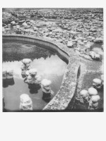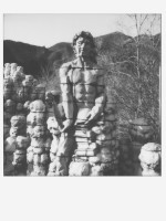 Cernée de deux colonnes organiques surplombées de figures enfantines, l’entrée du Rainbow Fountain invite le visiteur à entamer une déambulation dans un large espace vallonné : la forêt de statues d’homme-arbre, le fauteuil nuage, la colline de muses, le mur « des vainqueurs », composé de plaques en céramique avec le nom de ceux qui ont aidé par leurs dons à la création du site…et, surtout, « le rainbow fountain » qui donne son nom au lieu : la fontaine que Kenji Azuma rêvait de voir alimentée par l’eau de la rivière voisine, éclairée par la lumière d’un arc en ciel qui ne finirait jamais. Car pour Kenji Azuma, lecteur assidu de la Bible, son travail d’artiste, qu’il comparait à un marteau, consistait à ancrer au sol l’inspiration, venue du ciel, d’une source d’espoir et de réconfort. Si sa source reste sèche, faute de financement de coûteux travaux d’adduction d’eau, le Rainbow Fountain tient la promesse de son auteur. « Même après ma mort, mon œuvre restera, alors elle aura son propre destin. » En contrebas, coule la rivière dont le bruit anime et transporte le rêve de Kenji Azuma, d’un ressourcement offert à tous.